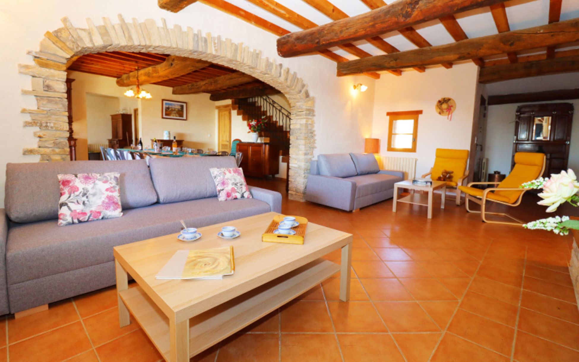 Pièce principale : Table et chaises 16 places, Buffet, 2 Canapés 3 places convertibles, 3 fauteuil, 2 Tables basses, Télévision 140cm, internet, chaîne hi-fi, armoire, Cheminée avec insert, Lampe, jeux de société, livres.